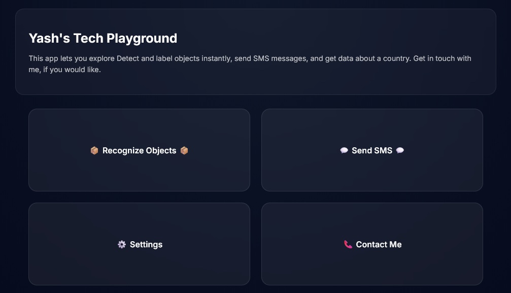 A modern, full-stack web application featuring AI-powered tools and communication utilities. Built with a React + Vite frontend and a Node.js + TypeScript backend, this project showcases real-time object detection, SMS messaging, and secure contact workflows.